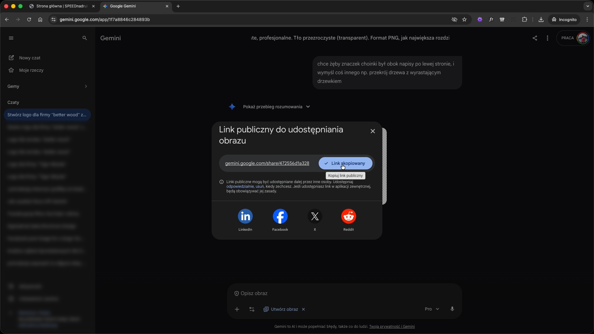 Kliknij przycisk „Pobierz" pod wygenerowanym logo, a następnie wklej plik w odpowiednie pole podczas składania zamówienia na SpeedNadruki.pl.
